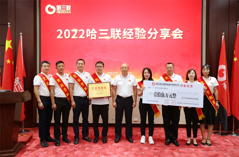 2022年是公司轉(zhuǎn)型升級(jí)發(fā)展最為關(guān)鍵的一年,面對(duì)集采下日益激烈的市場(chǎng)競(jìng)爭(zhēng),哈三聯(lián)第七批國采項(xiàng)目組精準(zhǔn)把控市場(chǎng)現(xiàn)狀,明確目標(biāo)與投標(biāo)策略,實(shí)現(xiàn)四個(gè)自有針劑產(chǎn)品“鹽酸昂丹司瓊注射液”、“注射用奧美拉唑鈉”、“依達(dá)拉奉注射液”、“克林霉素磷酸酯注射液”在第七批國采中全部中標(biāo)。會(huì)上秦劍飛董事長(zhǎng)向哈三聯(lián)第七批國采項(xiàng)目組代表頒發(fā)突出貢獻(xiàn)獎(jiǎng)并給予現(xiàn)金獎(jiǎng)勵(lì)。