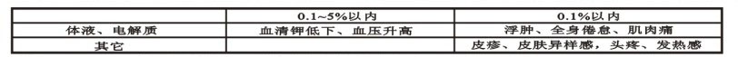 2、其他不良反應(yīng) 還可能出現(xiàn)以下癥狀(見表)。在增大用藥劑量時,可增加血清鉀下降,血壓升高的發(fā)生。